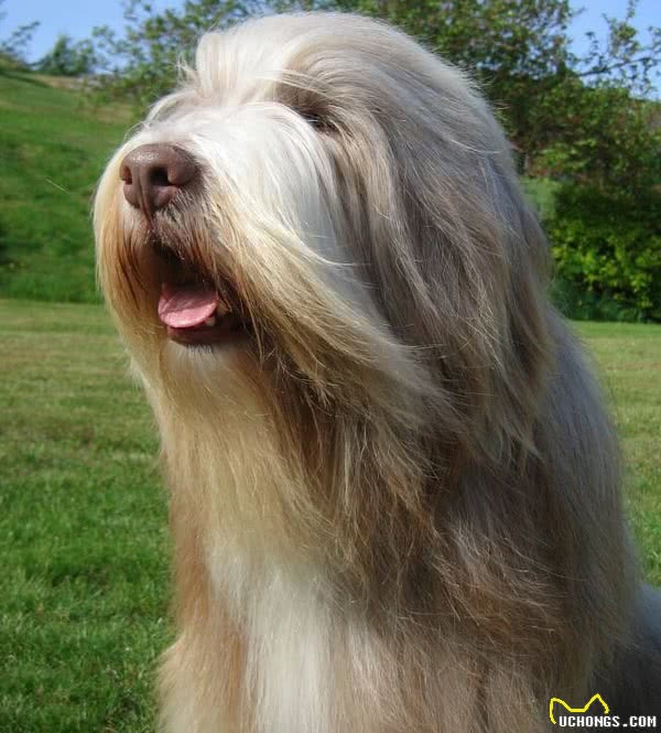 长须牧羊犬(Bearded Collie)产地英国,也称高地牧羊犬,古代长须牧羊犬体型中等,具有长度适中的被毛,被毛沿着天然的身体轮廓下垂,允许身体下部有空白,身躯长而倾斜,虽然强壮,但不显得笨重。聪明、好奇的表情是这一品种的显著特点之一。古代长须牧羊犬应该始终保持自然形态。属喜爱室外活动的犬种,同时也可成为家庭中的一员。外形近似英国牧羊犬,只是体型较细挑瘦长,且不用断尾。