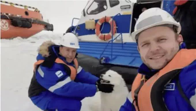 结果找了一下,就发现有只狗狗站在浮冰上,他们赶紧开着破冰船靠近。